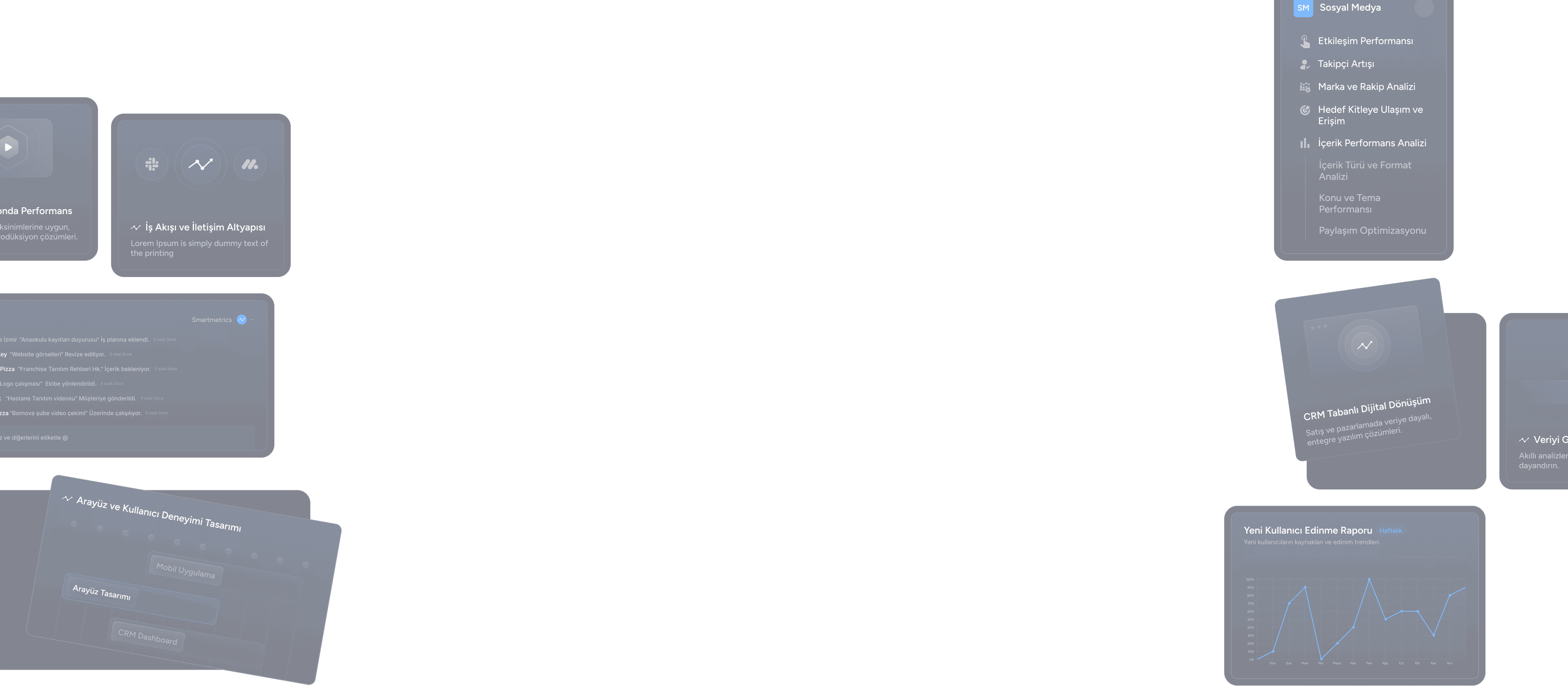 Smartmetrics, veriye dayalı stratejiler, yaratıcı üretim süreçleri ve işinize özel dijital çözümlerle markanızı bir adım öne taşır. Etkili CRM entegrasyonlarından güçlü kampanya yönetimine kadar tüm ihtiyaçlarınız için hızlı ve profesyonel destek sunar.