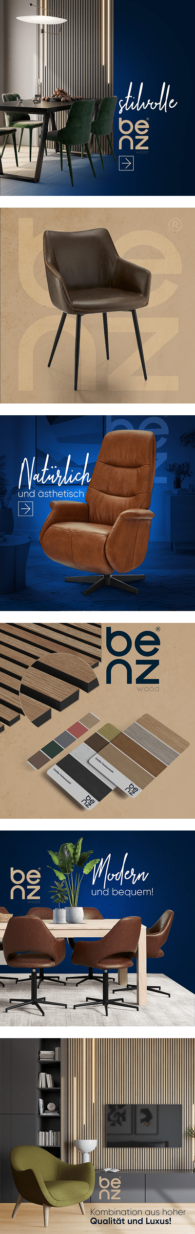 Benz Wood’un zarif ve doğal tasarım anlayışını yansıtmak için markalama sürecinde minimalist ve modern bir yaklaşım benimsendi. Renk paleti olarak lacivert ve toprak tonları tercih edildi; lacivert markanın güvenilirlik ve profesyonelliğini vurgularken, toprak tonları doğal malzeme kalitesini ve sıcaklığı temsil ediyor. Tipografi seçiminde ise hem okunabilirliği yüksek hem de markanın sofistike duruşunu tamamlayan modern ve temiz fontlar kullanıldı. Bu bileşim, markanın tüm iletişim materyallerinde tutarlı, estetik ve güçlü bir görsel kimlik oluşturmasını sağladı.