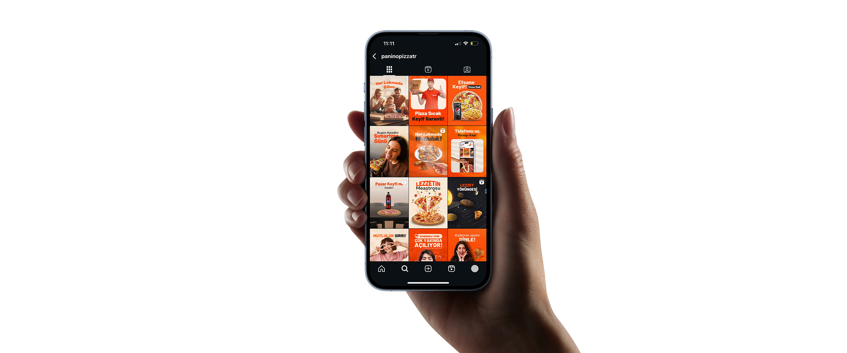 Panino Pizza’nın sosyal medya hesaplarını markanın enerjisini ve lezzet tutkusunu yansıtacak şekilde yönetiyoruz. Strateji, içerik üretimi, tasarım, metin yazımı ve topluluk yönetimini kapsayan bütünsel bir sosyal medya yaklaşımıyla, markanın dijitalde daha görünür ve etkileşim odaklı olmasını sağlıyoruz. Trendleri yakalayan kreatif içeriklerle markayı gündemde tutarken, performans odaklı reklam yönetimiyle de erişim ve dönüşüm oranlarını maksimize ediyoruz.